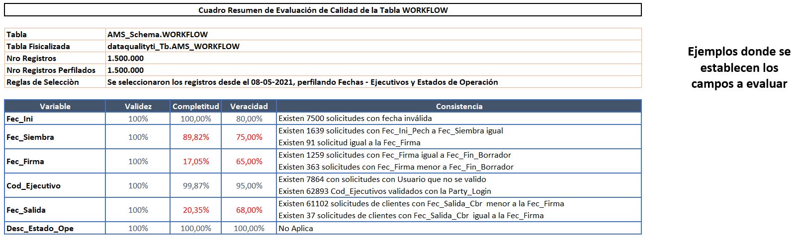 Consiste en determinar de calidad para cada Tabla y Campo, con medidas y KPI definidos para ellos
